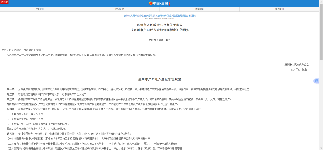 《惠州市户口迁入登记管理规定》